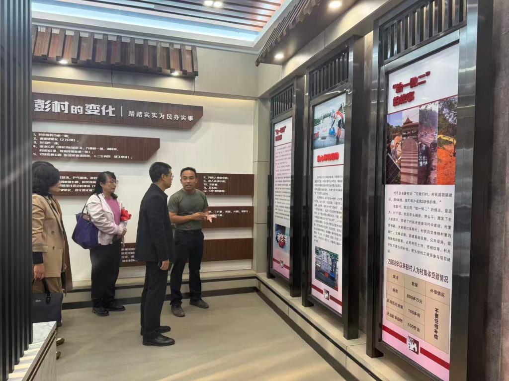 宣讲结束后,村干部陈波陪同马克思主义学院党员教师一行考察了彭村村村史馆。参观过程中,陈波同志如数家珍,不仅详细介绍了村庄的历史沿革、发展成就与特色文化,还结合展陈内容,生动讲解了彭村村在党的领导下推进“百千万工程”和乡村治理的具体实践,为学院教师提供了宝贵的基层一线素材。