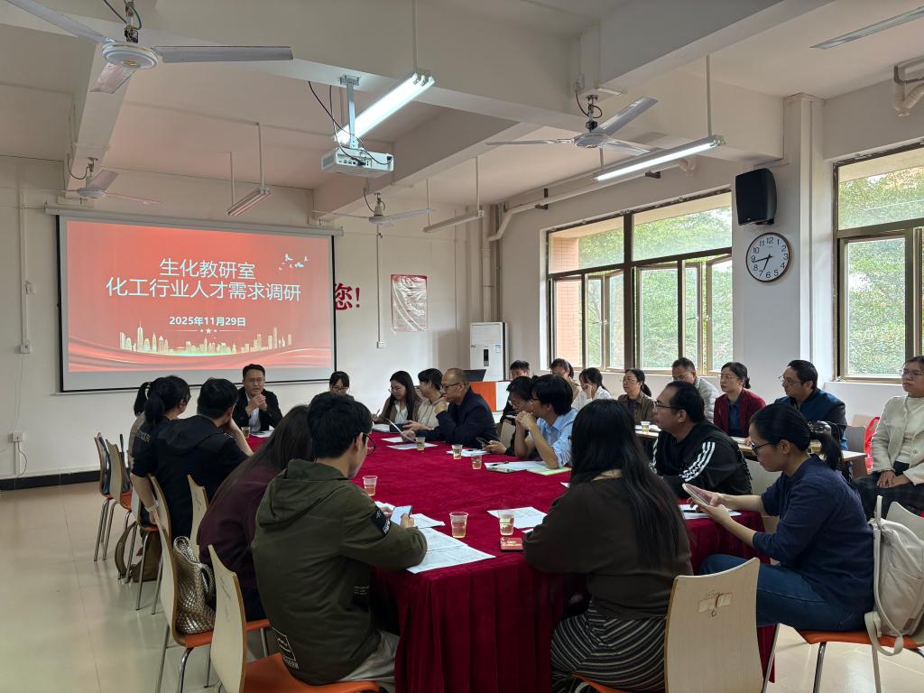 11月29日下午,化学工程系负责人陈少峰、生化教研室主任邓小玲及教研室教师代表,与各招聘企业代表在南校区9栋教学楼205室举行生化教研室校企合作交流座谈会。