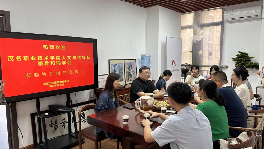 为落实学校访企拓岗工作部署,深入了解企业用人需求,拓宽学生实践、就业渠道,4月7日,茂名职业技术学院人文与传媒系社工师生在系党总支副书记蒋南牧带领下赴茂名市心理咨询师协会(以下简称“茂名市心协”)开展深度交流,并成功举行校企合作签约与实践基地授牌仪式。