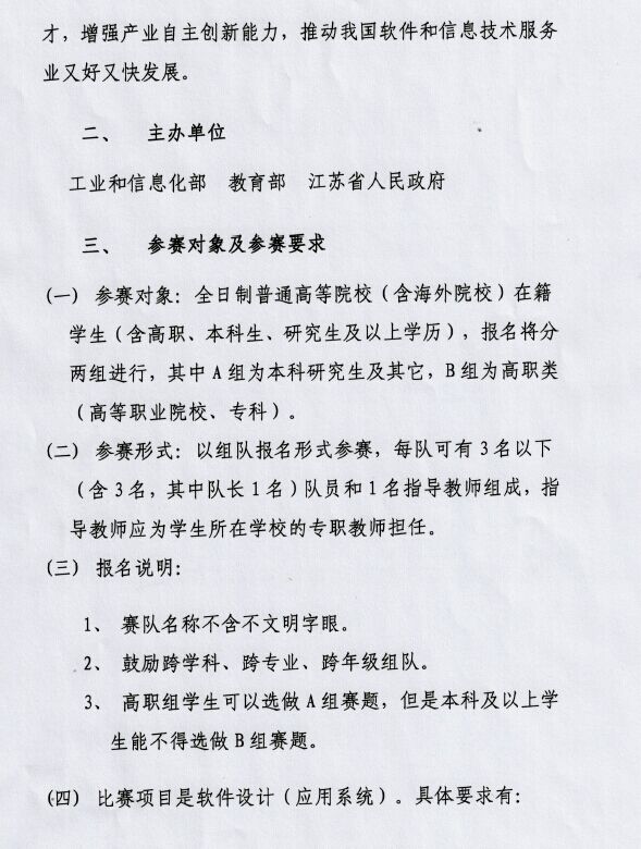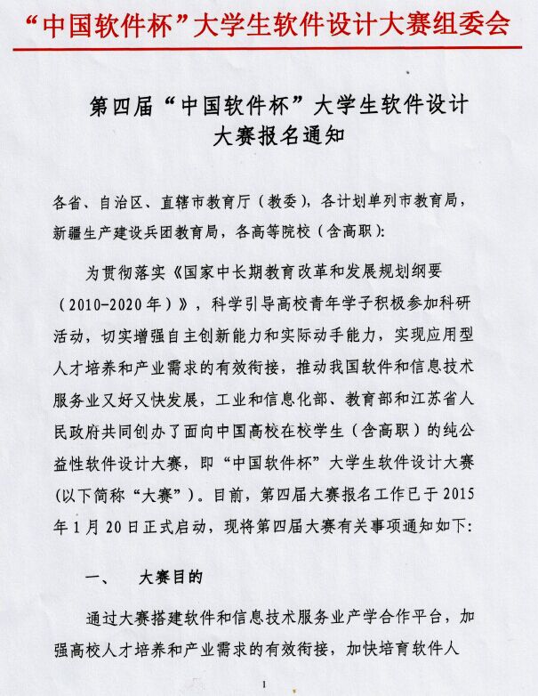 第四届“中国软件杯”大学生软件设计大赛报名通知