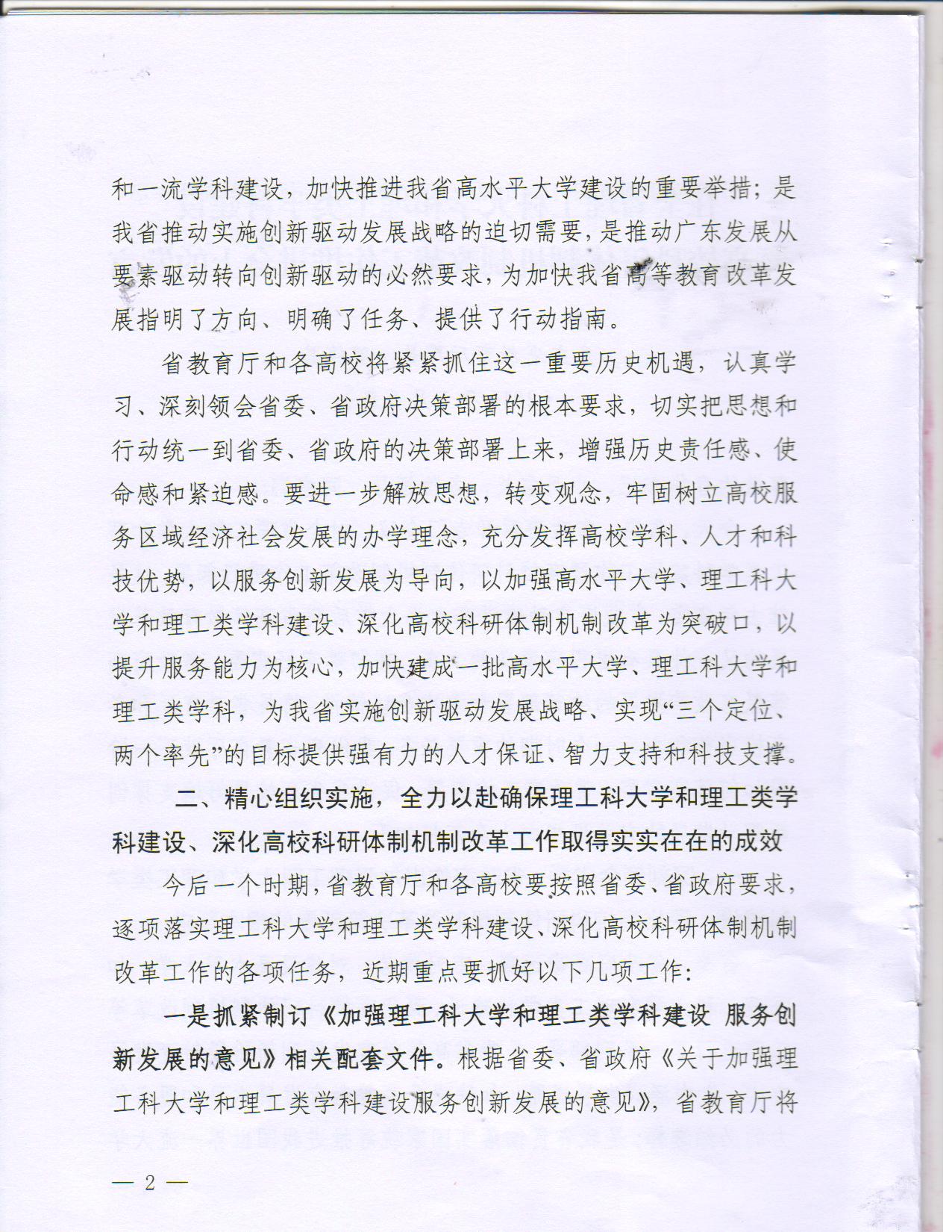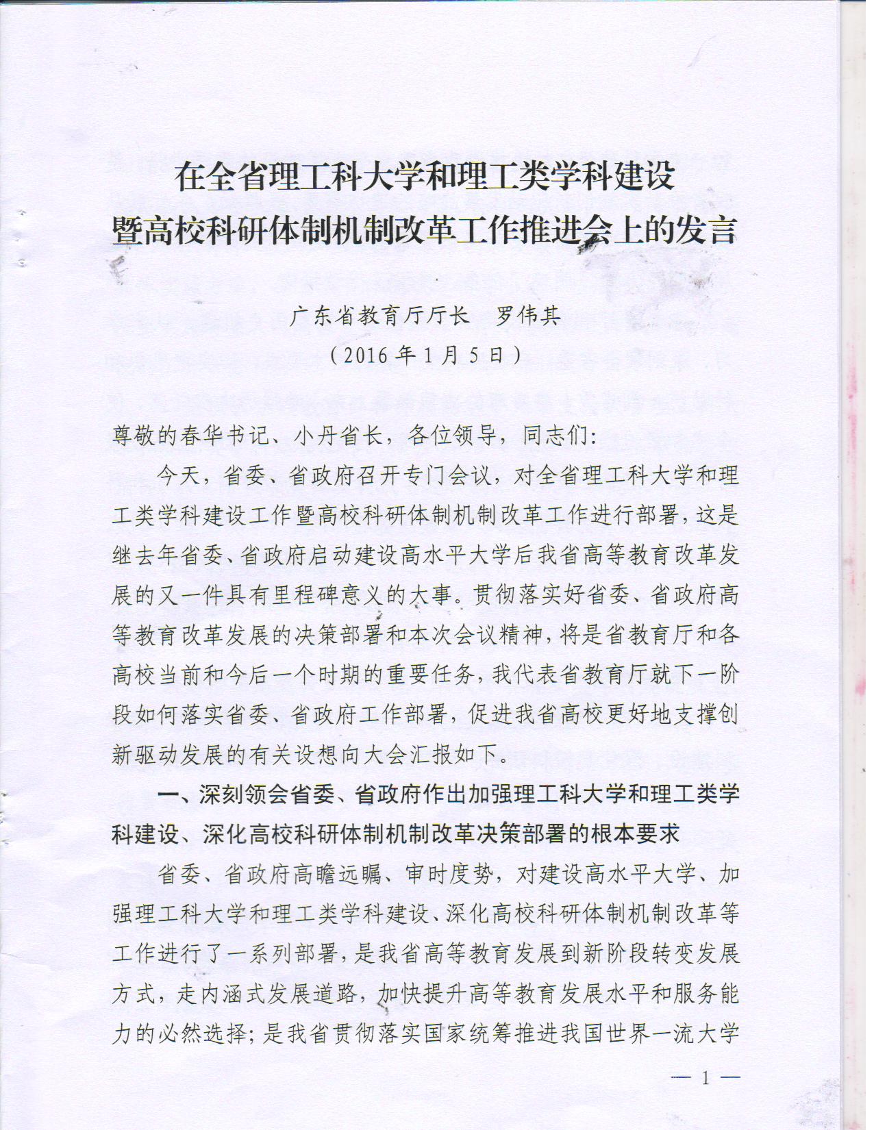 广东省教育厅厅长罗伟奇在全省理工科大学和理工类学科建设暨高校科研体制机制改革工作推进会上的发言