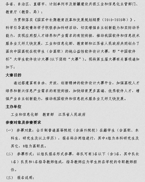 关于第五届“中国软件杯”大学生软件设计大赛参赛报名通知