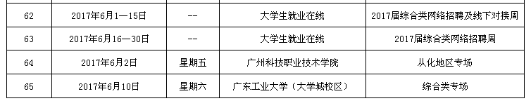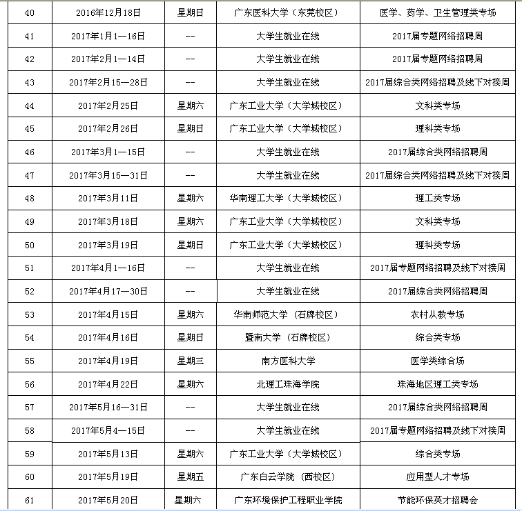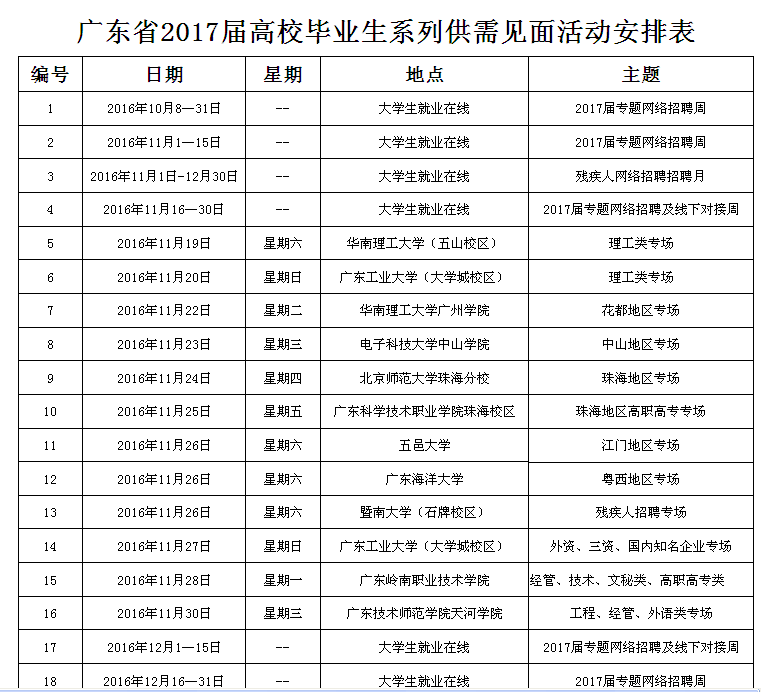 附件:1.广东省2017届高校毕业生系列供需见面活动安排表