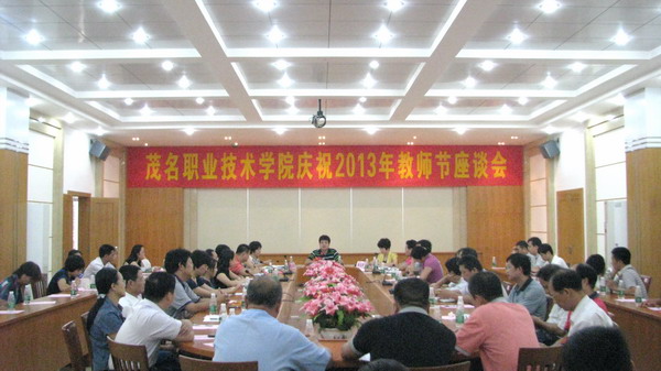 9月10日下午,学院隆重召开庆祝2013年教师座谈会。座谈会以“立德树人,同心共筑中国梦”为主题,贯彻群众路线教育实践活动要求,突出落实教学中心地位,听取教学部门和一线优秀教师对学院加快实施人才强校战略,建设一支专兼结合的强大师资队伍,全面提升学院核心竞争力,争创粤西一流的高职院校的意见和建议。院长李多民出席座谈会并作讲话,党委副书记、纪委书记林文琼主持会议,副院长梁德萍以及各部门负责人、各类先进教师代表、退休教师代表等50多人参加了座谈会。