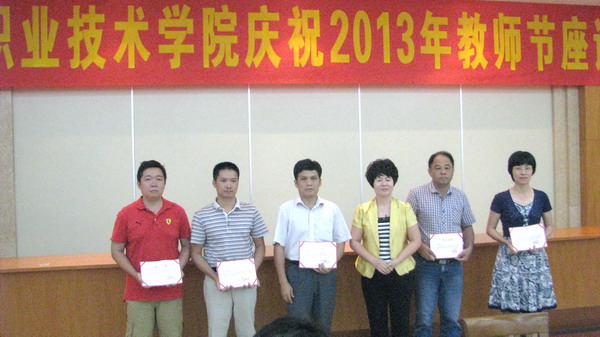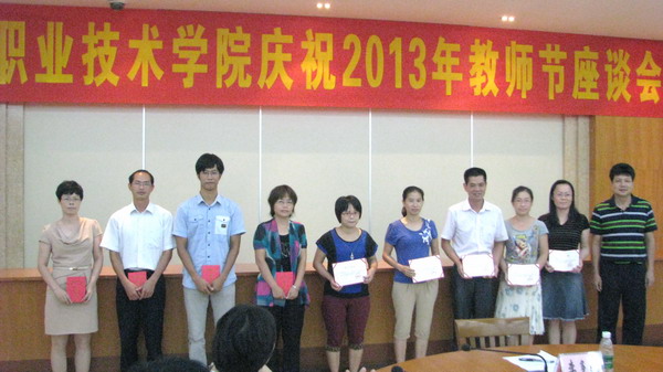 会议表彰了2012-2013学年度优秀教师、优秀教育工作者、优秀班主任、优秀辅导员等。人事处、土木工程系、化学工程系、经济管理系、计算机工程系、中专部等部门负责人对学院师资情况、专业建设、教学科研成果等情况作了介绍。先进教师代表作、教学一线代表、科研代表、技能大赛代表、退休教职工代表先后进行了发言。座谈会气氛热烈,与会教师代表对学院一年多来的巨大变化表达了发自内心的由衷赞赏,对学院真正落实教学中心地位、大力加强师资队伍建设、切实为教师办实事办好事表达了衷心的感谢,并对学院进一步加强师资队伍建设、提高教学科研水平提出了许多宝贵建议。