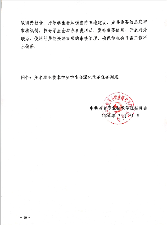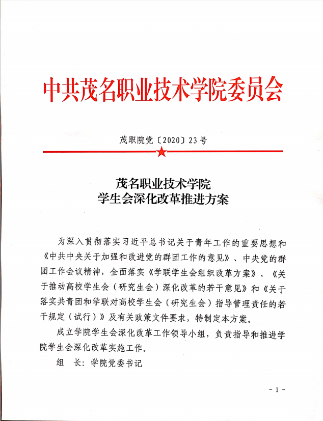 茂名职业技术学院学生会深化改革推进方案
