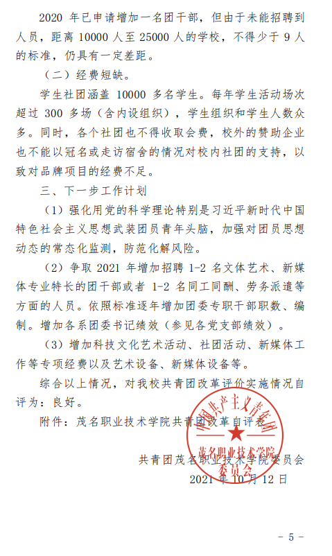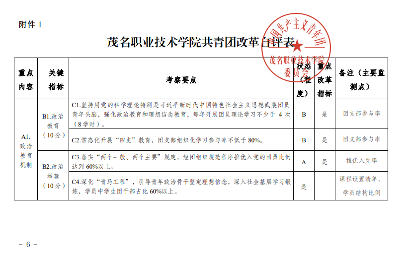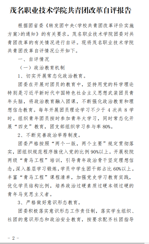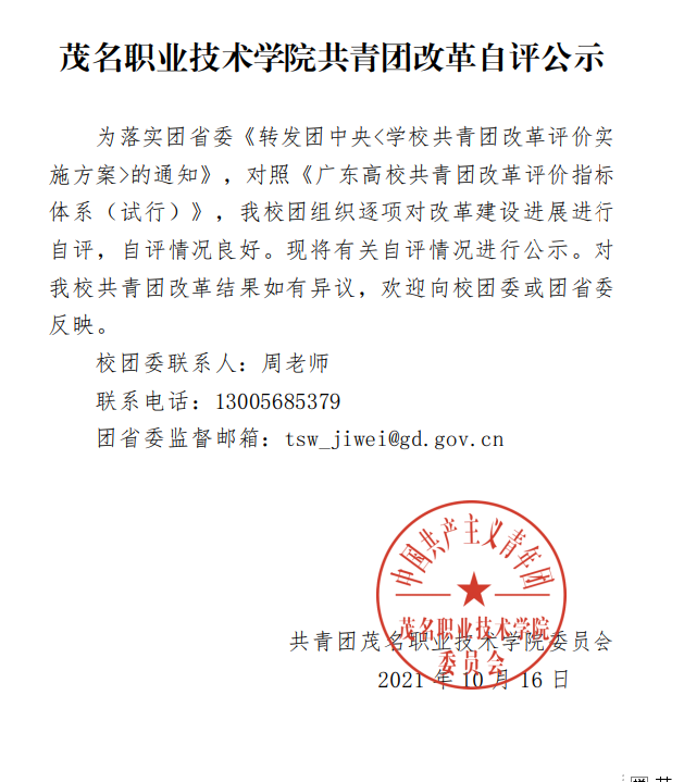 茂名职业技术学院共青团改革自评公示