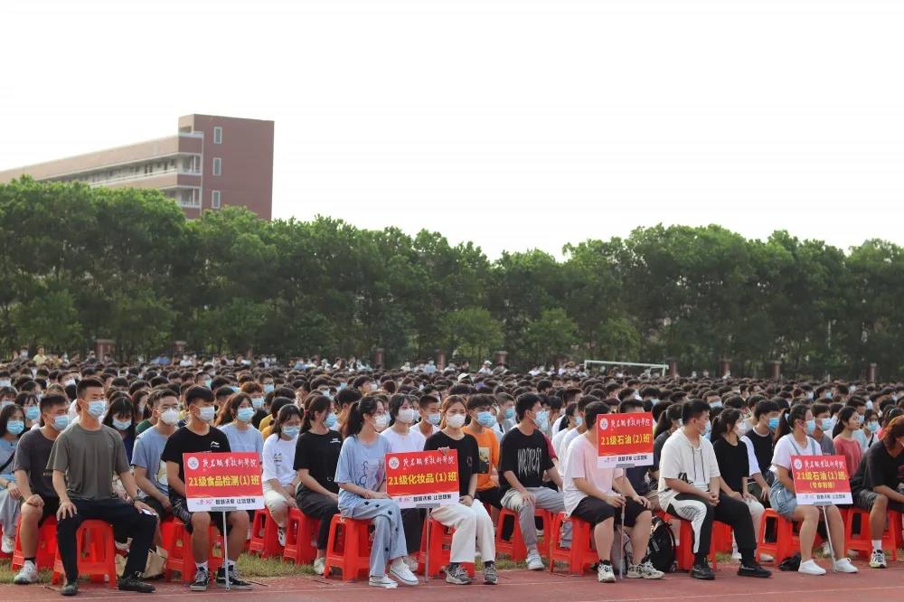 2021年9月12日茂名职业技术学院开学典礼分别在南北校区隆重举行。学院领导、各职能部门负责人、各系负责人及党总支副书记、2021级辅导员及班主任、2021级5000多名新生参加开学典礼。
