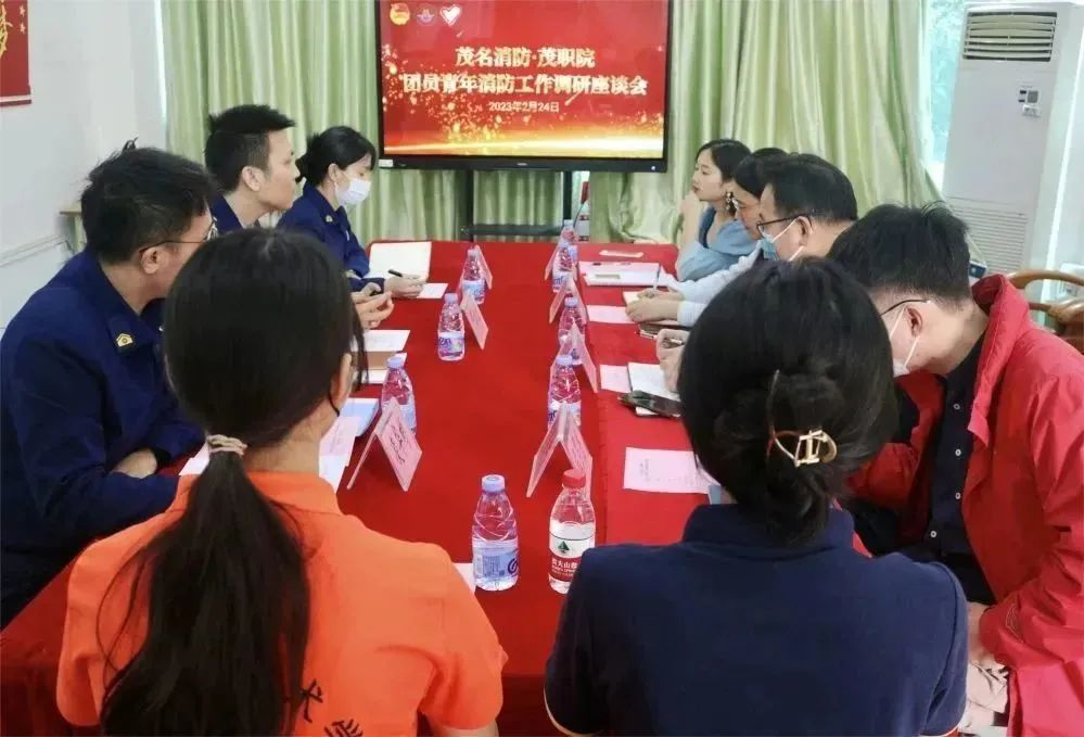 2023年2月24日上午,茂名市消防救援支队全媒体中心主任邓上宏、消防文员谭颖君、凌华彬一行莅临我院开展团员青年消防工作调研座谈会。学院团委副书记梁凤燕,总务处保卫科消防工作负责人林青秀,学生处科员罗莎,经济管理系团委书记程罗宇,新媒体中心、青年志愿者协会学生代表在北校区团委活动室参加了会议。