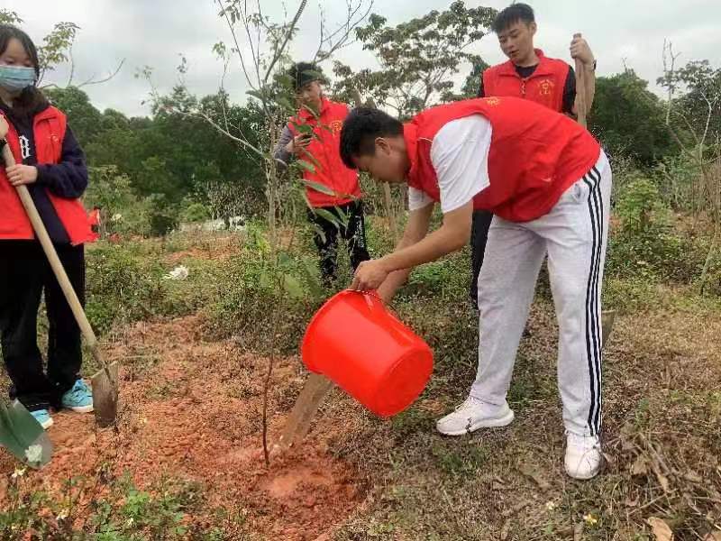 3月21日,茂名职业技术学院志愿者参加茂名市全民义务植树活动。志愿者们热情高涨、干劲十足地领取铁锹、水桶等植树工具,迅速投入到植树活动中。大家三五人一组,分工协作,相互配合。整个劳动现场繁忙有序,挖坑铲土、栽植树苗、填土踩实,提水浇灌,每道工序都做得仔细认真,大家一边植树一边交流,现场气氛十分活跃。经过大家的辛勤劳动,一棵棵新栽下的树苗迎风挺立。志愿者栽种了树苗的同时,播种了绿色的希望,倡导了“文明、健康、环保”的生活方式,一起为建设“滨海绿城,好心茂名”贡献一份力量。