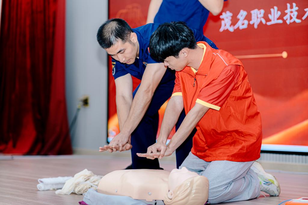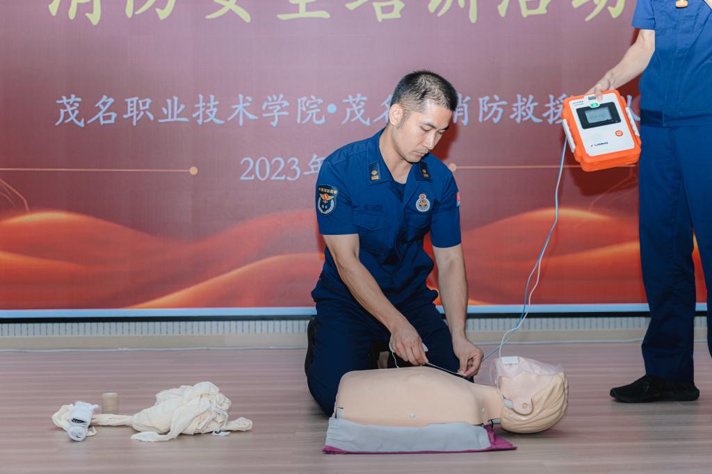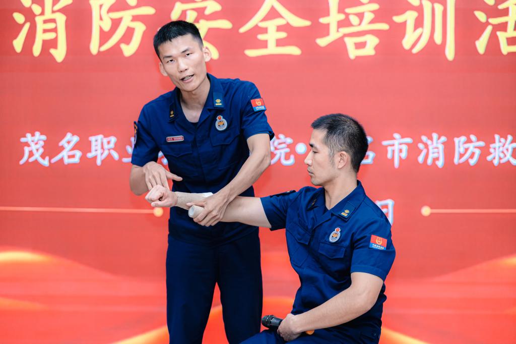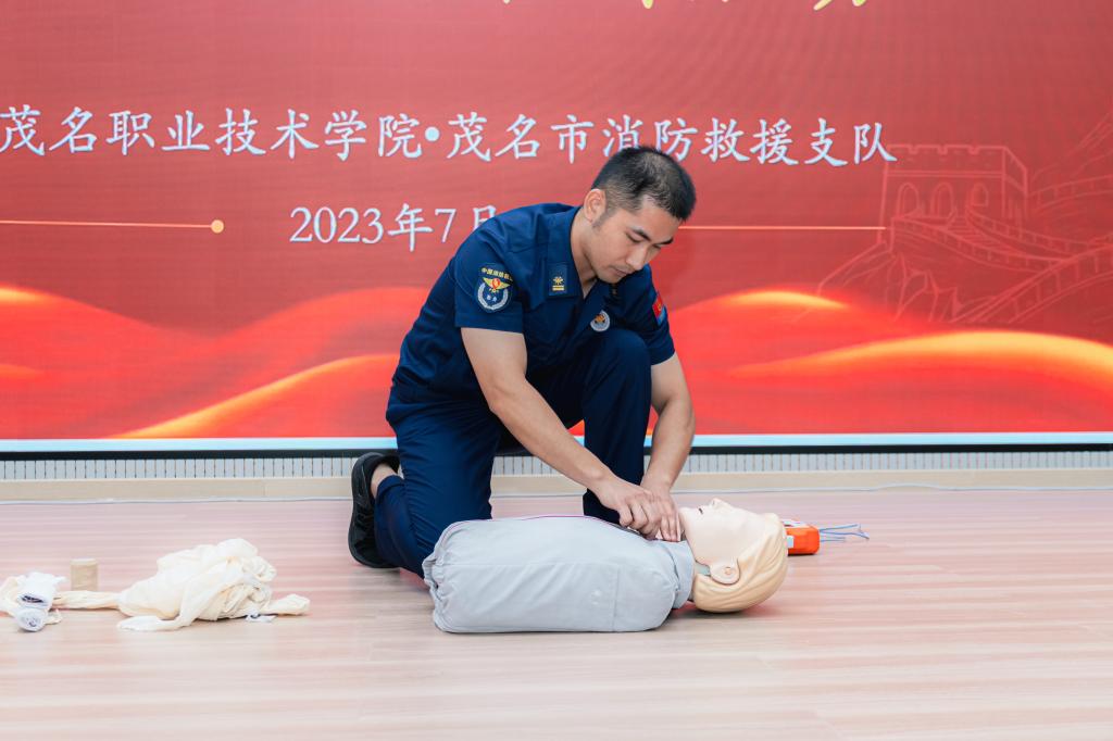 在“青春三下乡·消防志愿行”消防安全培训活动中,茂名市消防救援支队人员对茂名职业技术学院服务队成员进行个人应急救护培训、消防安全培训活动和工作动员会。