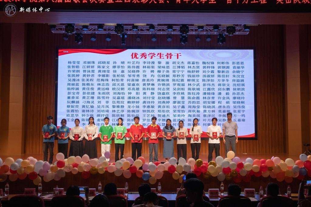在团歌会上,青年在团歌会决赛、五四表彰大会、青年大学生突击队颁奖晚会上,与会领导为在青春赛道上奋力奔跑的集体与个人颁奖。