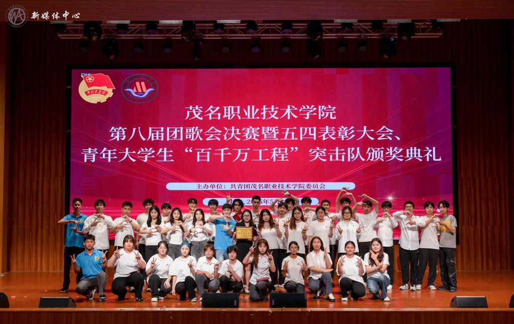 在纪念五四运动106周年之际,5月10日,茂名职业技术学院在南校区学术报告厅隆重举行第八届团歌会决赛暨五四表彰大会、青年大学生突击队颁奖晚会!学院党委专职副书记董荣权,各系负责人、学院相关职能部门代表,学院团委全体成员、各系团委书记、学生会秘书长等参加活动。