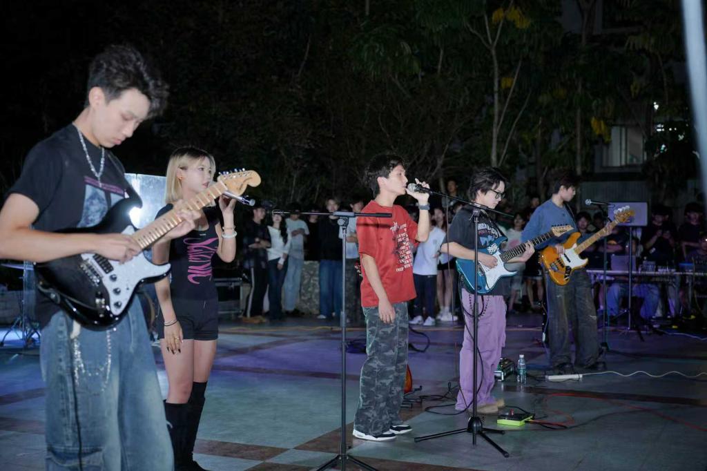 动感舞蹈《Meovv》《This is for》开启晚会,H.E乐队带来歌曲联唱,热血的旋律与激情的鼓点极具感染力,K05乐队的《逆行》《心要野》用摇滚的力量与师生同频共振。乐队的旋律、舞蹈编舞和默契的配合,都是学长学姐们为新生们精心筹办的。