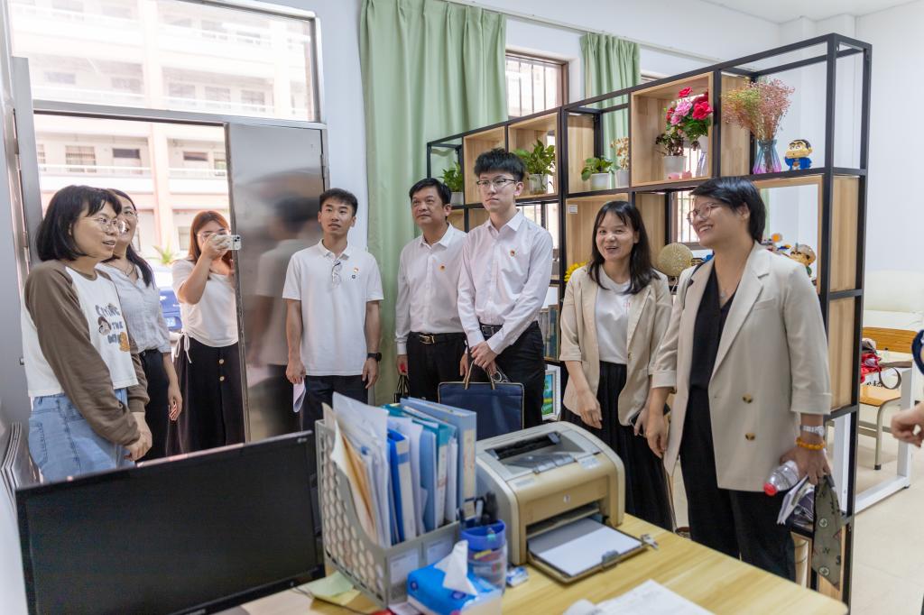 团市委副书记李霞一行还走访调研了学校青年活动中心、学校心理咨询室,深入了解学校青年大学生“百千万工程”突击队行动、大学生心理健康情况等。